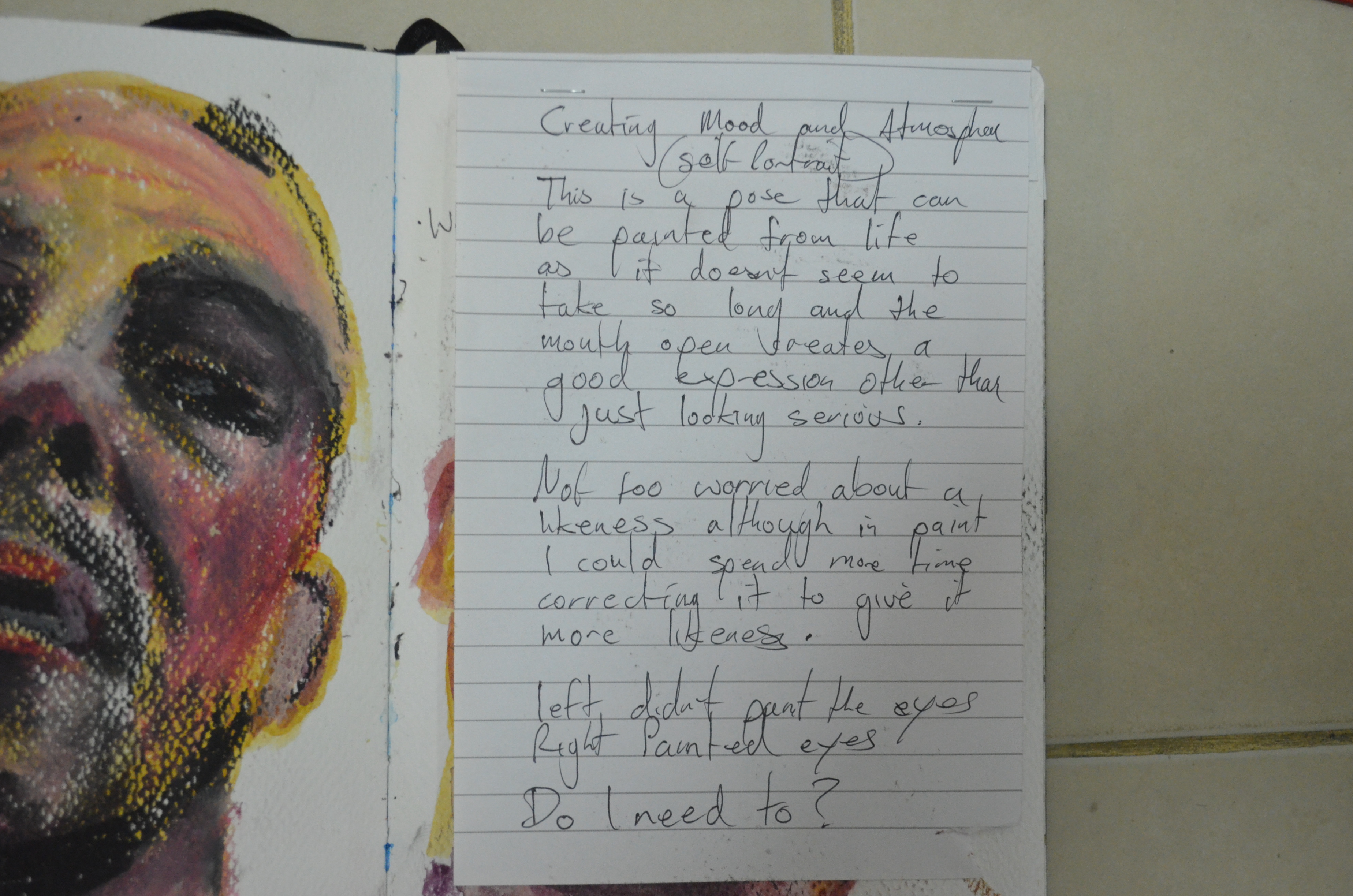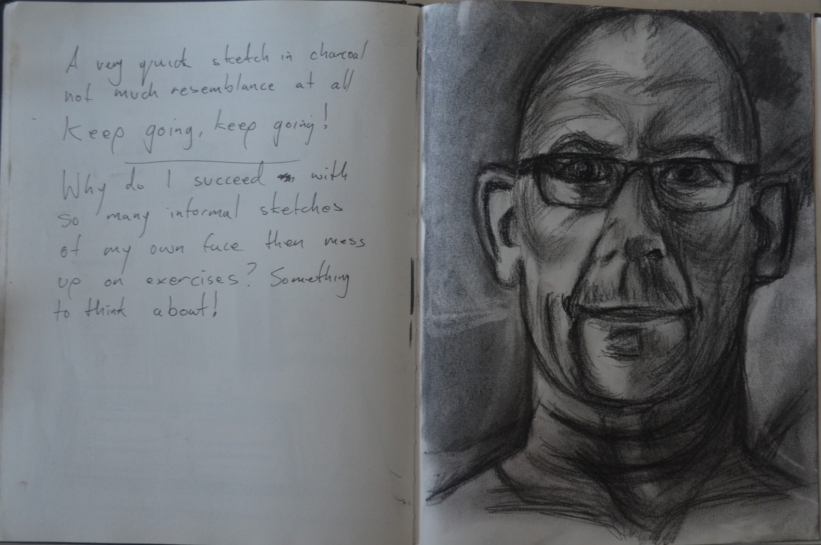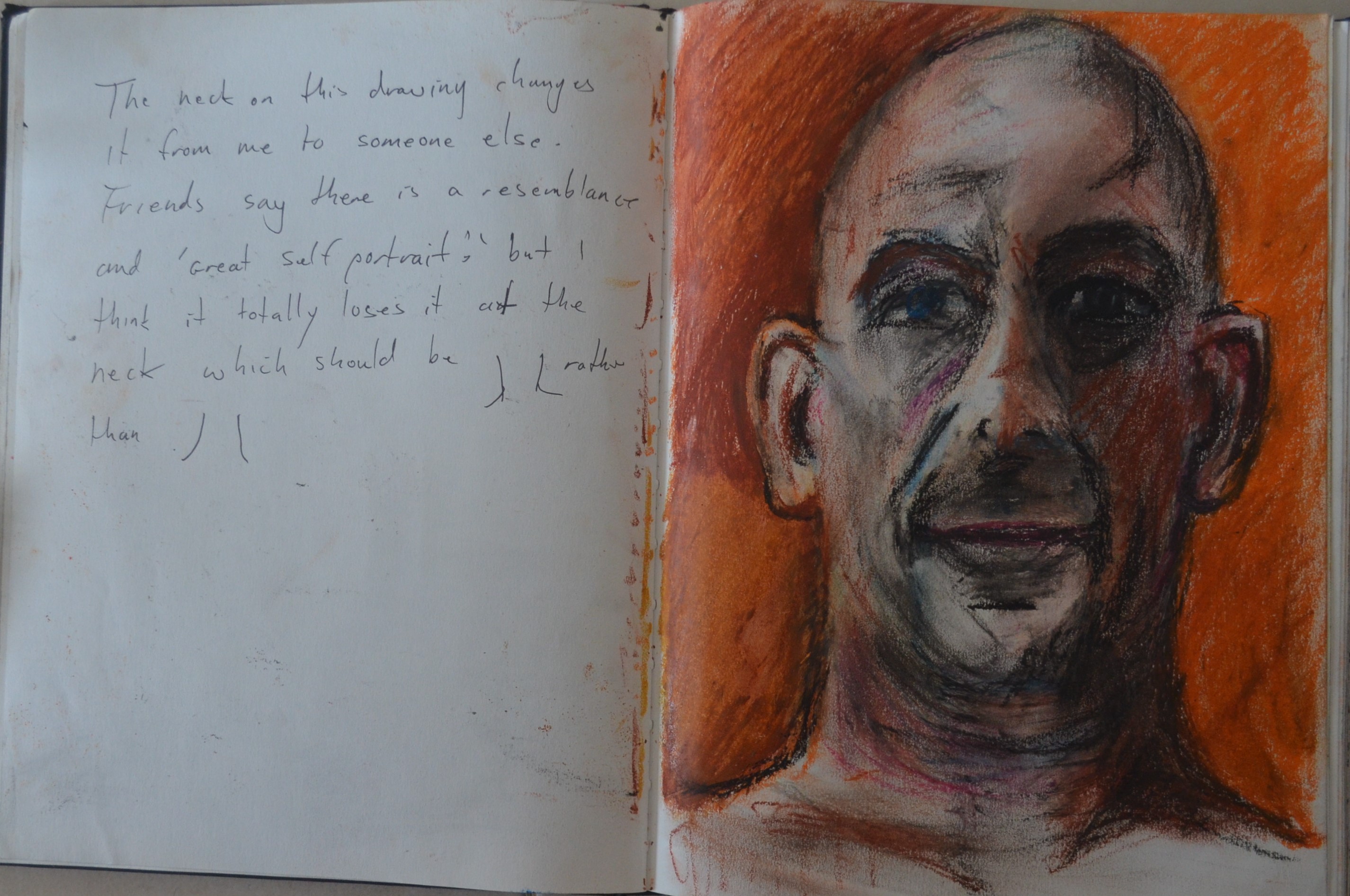 With my head in this position it was also quite easy to paint and see the sketch book. They weren’t a brilliant likeness of me as I was working very fast as to achieve expressive studies.