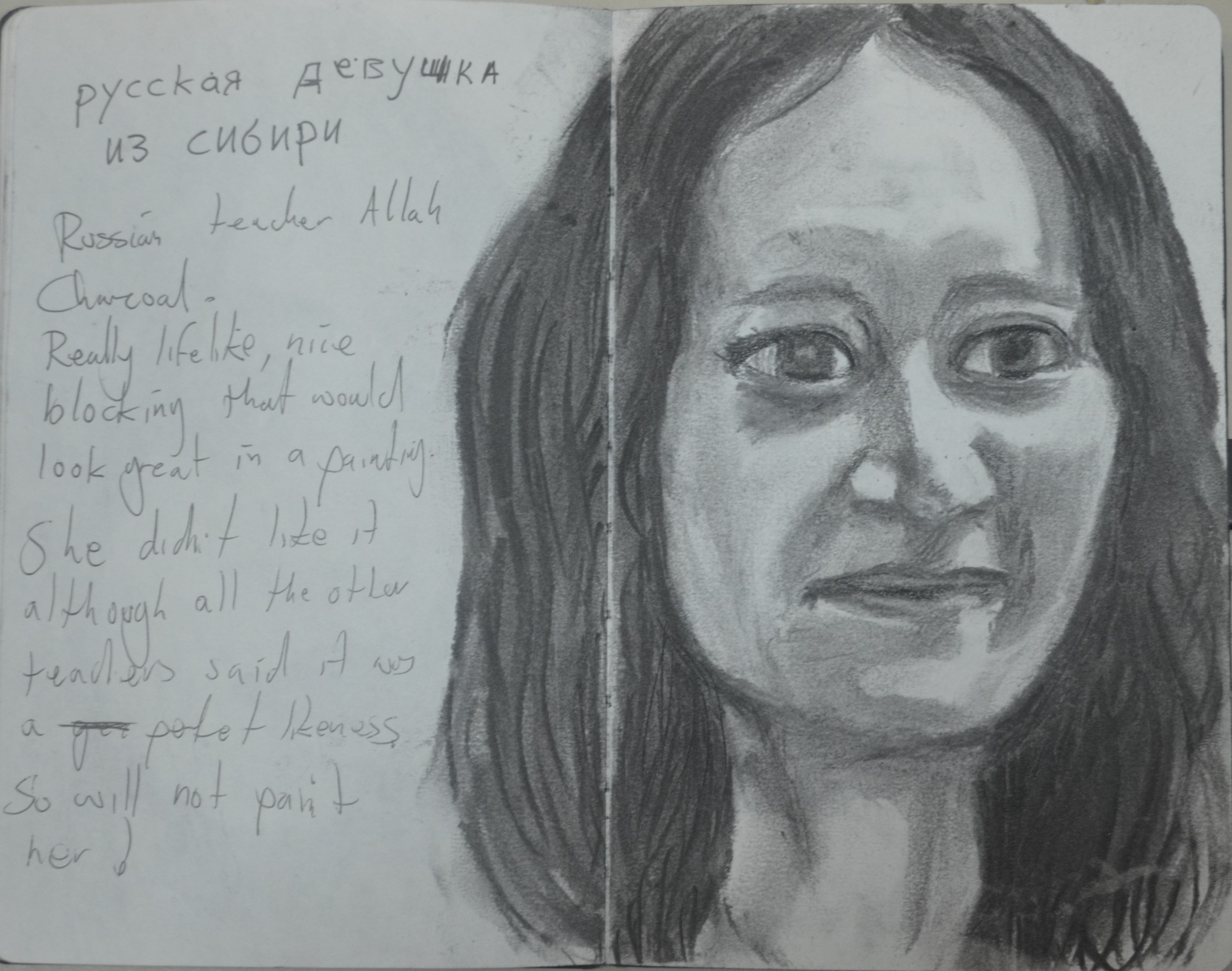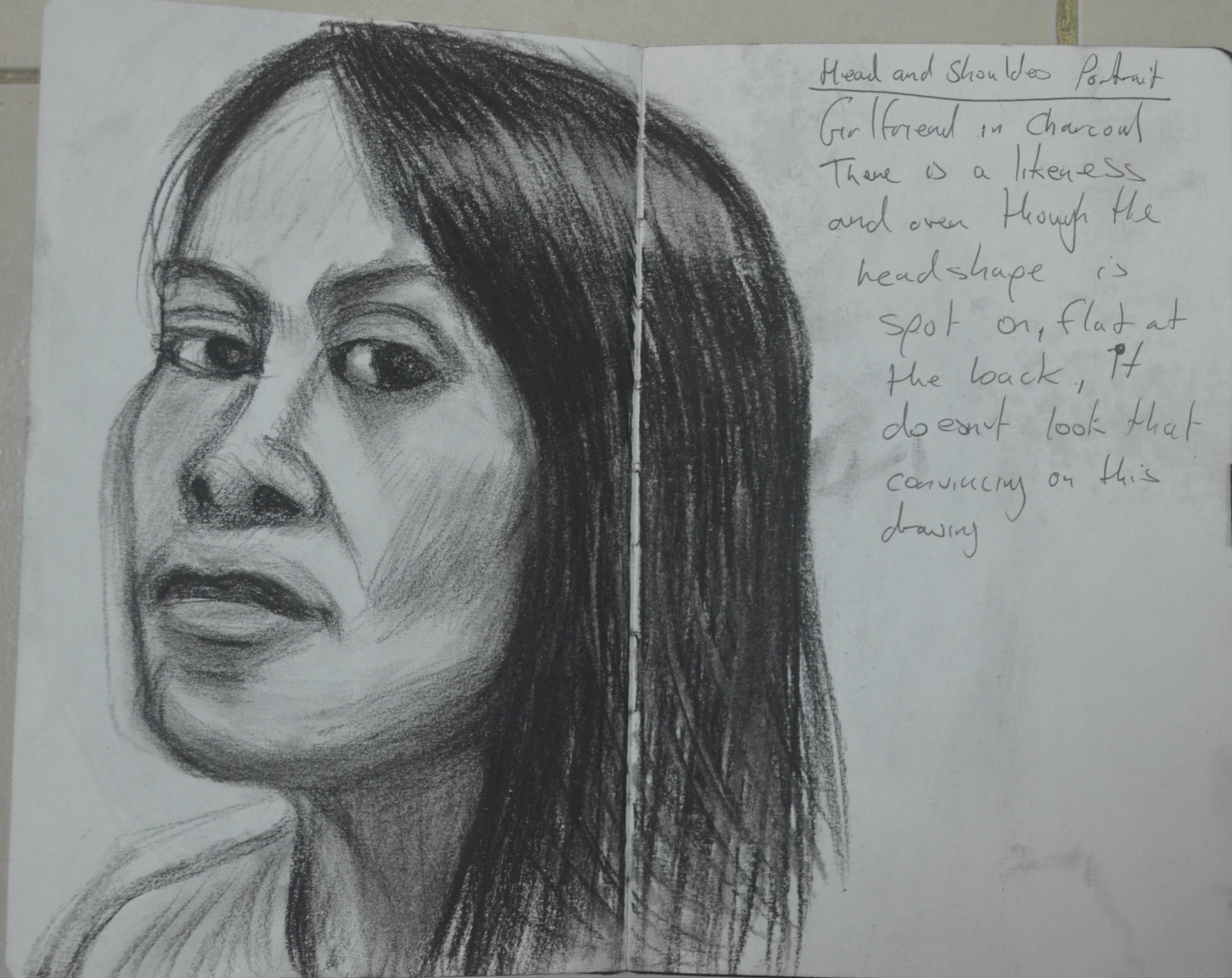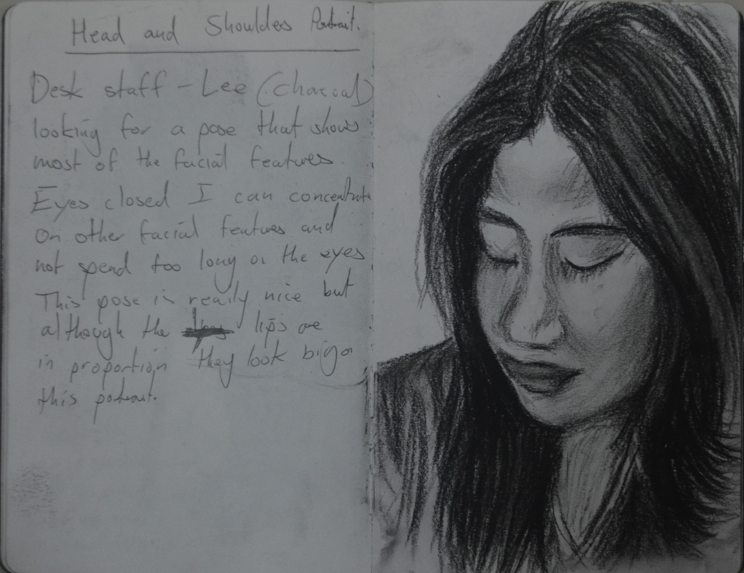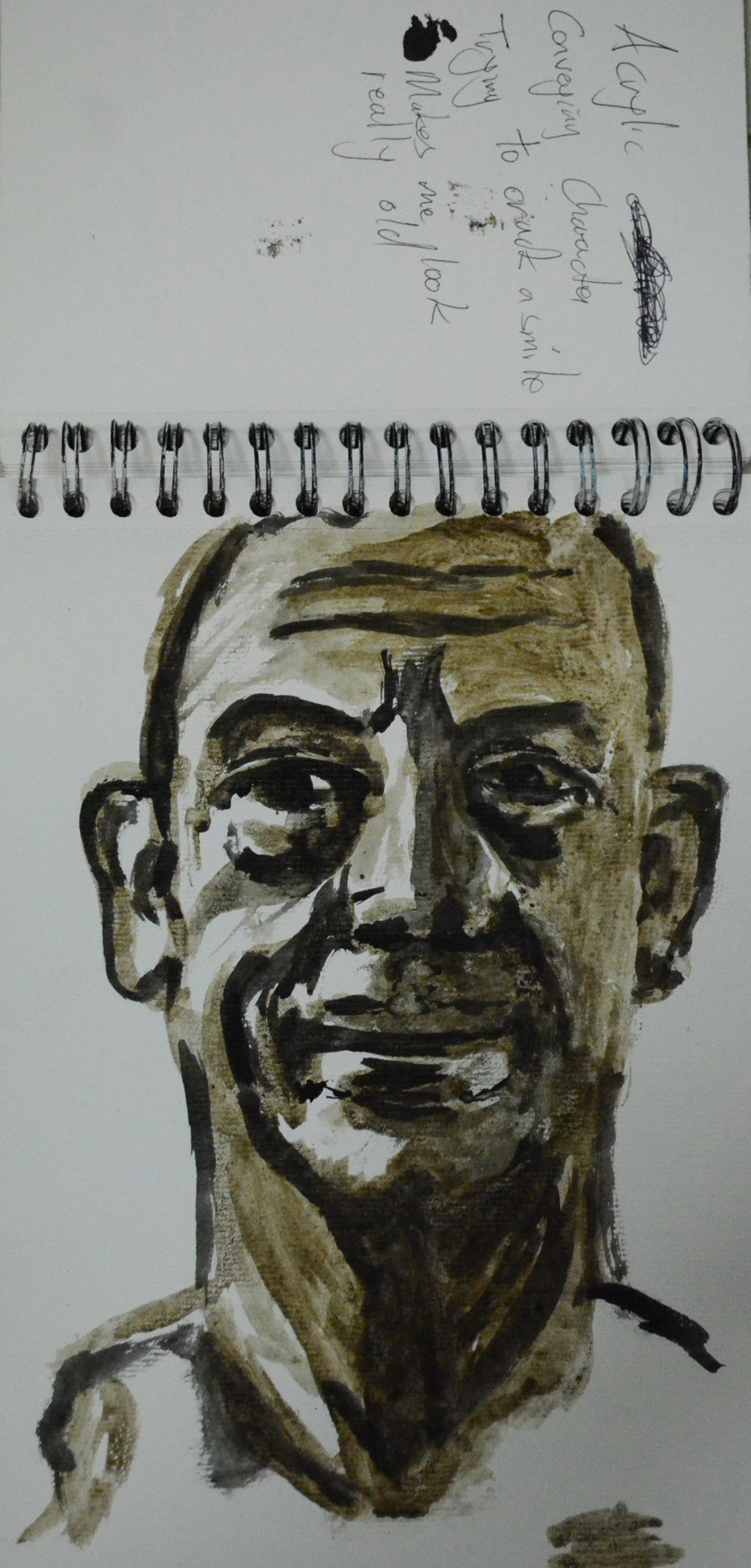 With my head in this position it was also quite easy to paint and see the sketch book. They weren’t a brilliant likeness of me as I was working very fast as to achieve expressive studies.