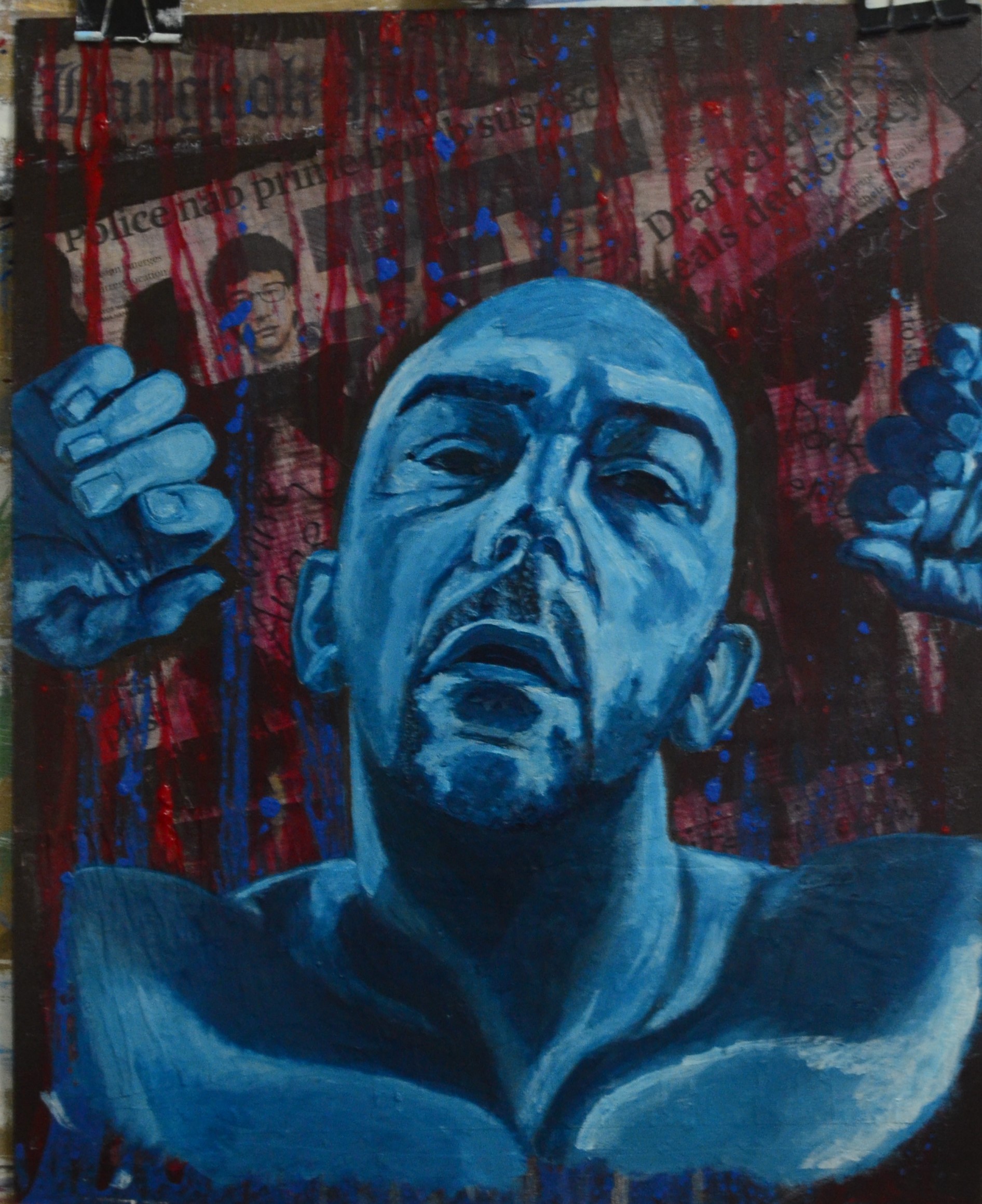 For this exercise I chose to do a self portrait and with the heavy atmosphere that we have experienced in Bangkok over the last couple of years, especially with the recent bombings, I already had a mood for the painting in mind I just wasn’t sure how I was going to get there.