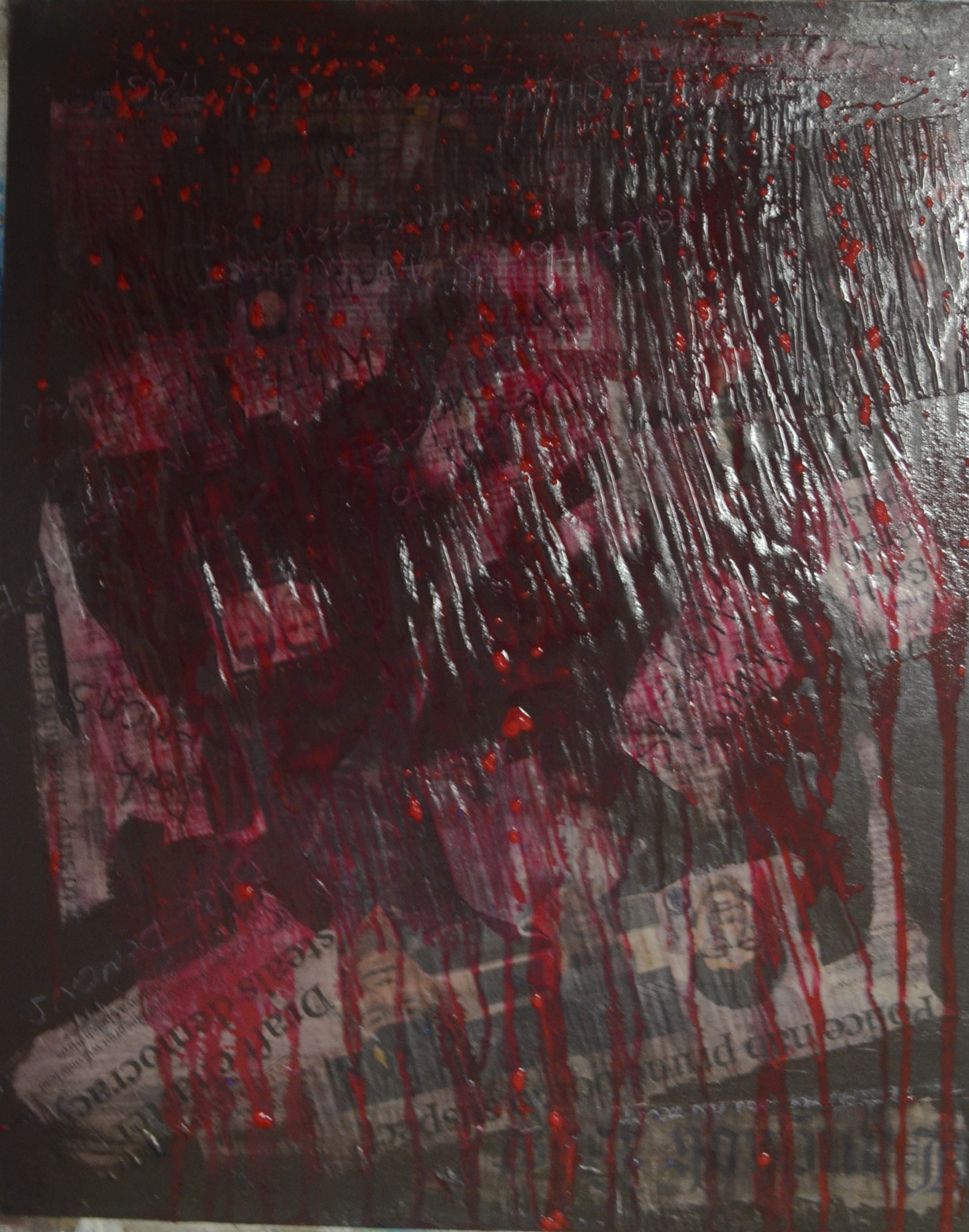 Before i started painting I wanted to ‘mess’ it up even more but in a way that it would add feeling to the painting so it had to be in a semi orderly fashion so I decided to create a dripping effect over the top of the collage.