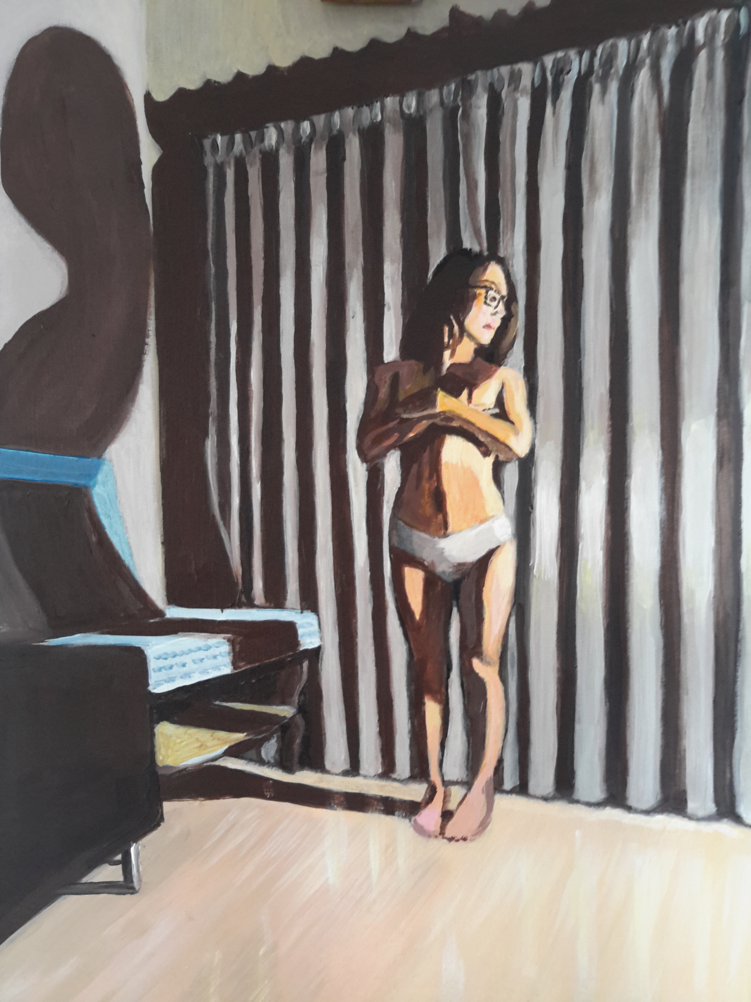 Then things took a turn while I was doing a photo shoot with the girlfriend for part of the painting I was working on and stumbled upon this almost perfect pose with perfect surroundings and lighting that would help me demonstrate my painting skills and reflect on the previous research point.