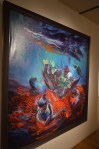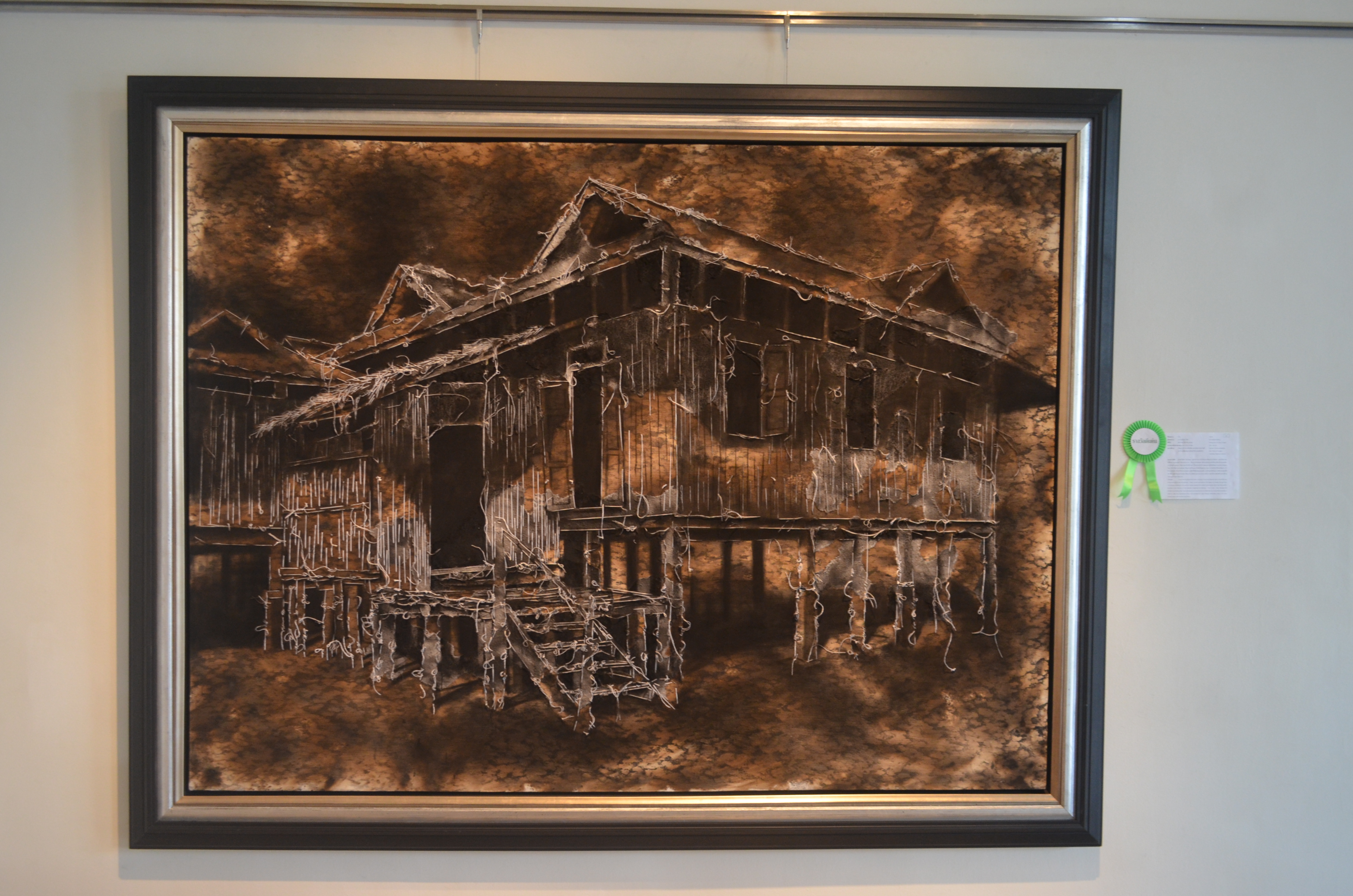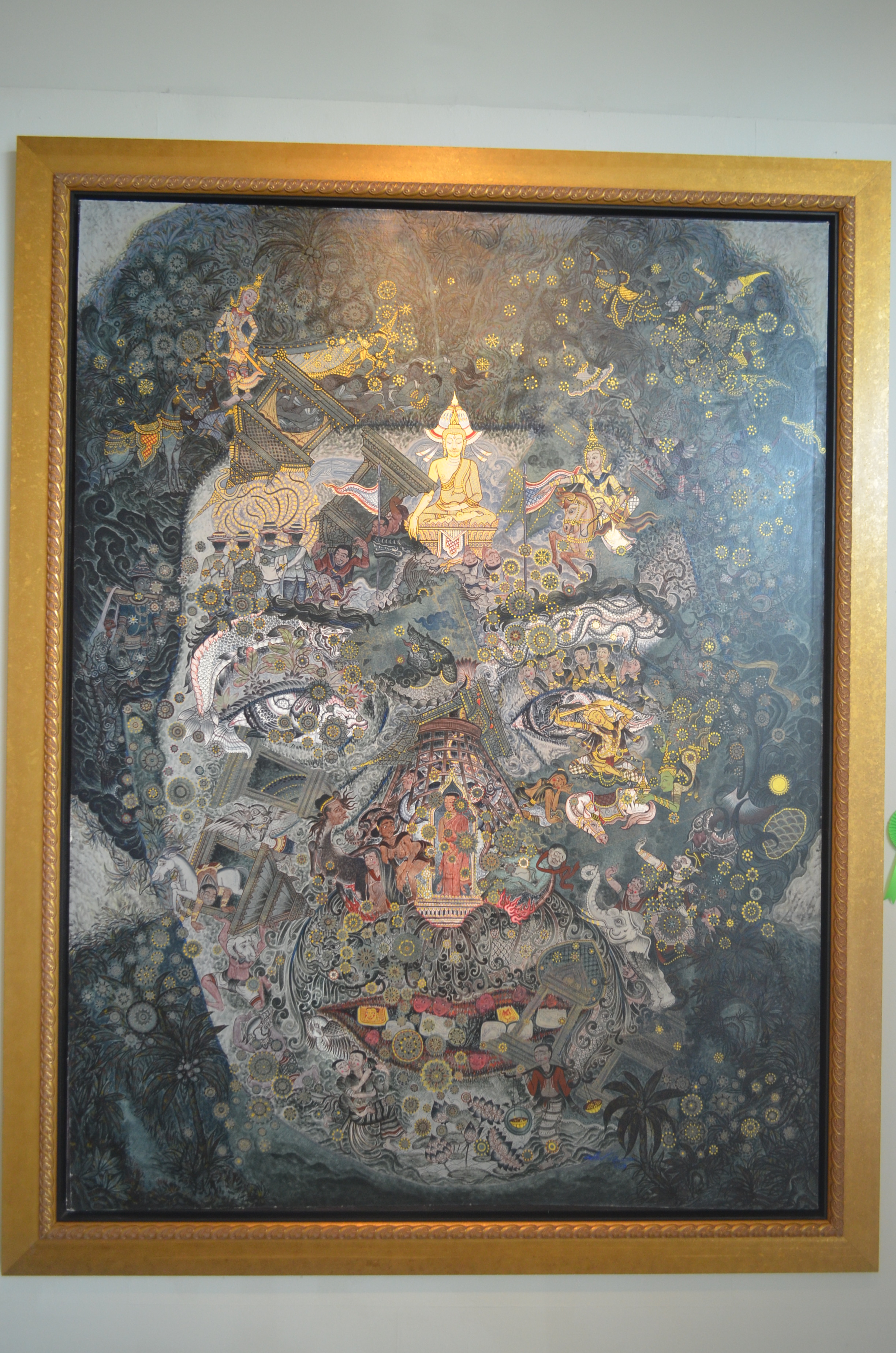 On the second floor there was a collection of entries from the first lot of competiton. From what I could make out they had been given a choice of themes for their paintings and a guess I would say they were Surrealism, Abstract, Politics, Thai culture, Modern Culture/architecture and Landscape, I say this because these kept repeating themselves in the paintings as I walked around the gallery.