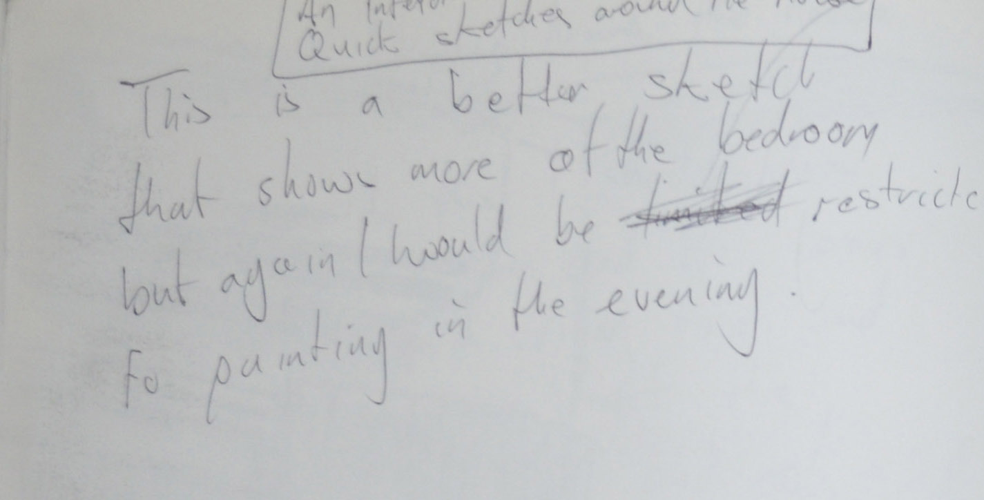 I wanted this to be a painting with a limited palette so I could keep it simple and because I wanted to keep thinks simple when I came to painting the detail I opened the bathroom door so I wouldn’t have to mess about painting the molded panels in the door.